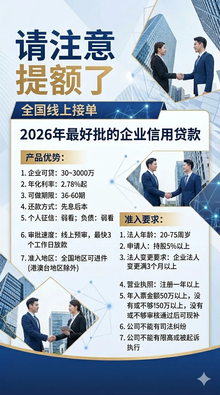 进入2026年,市场环境正发生深刻变化,企业转型升级离不开稳定、低成本的资金支持。针对中小微企业普遍面临的抵押物不足、融资慢等痛点,各地农商银行推出了多款企业信用贷款产品。