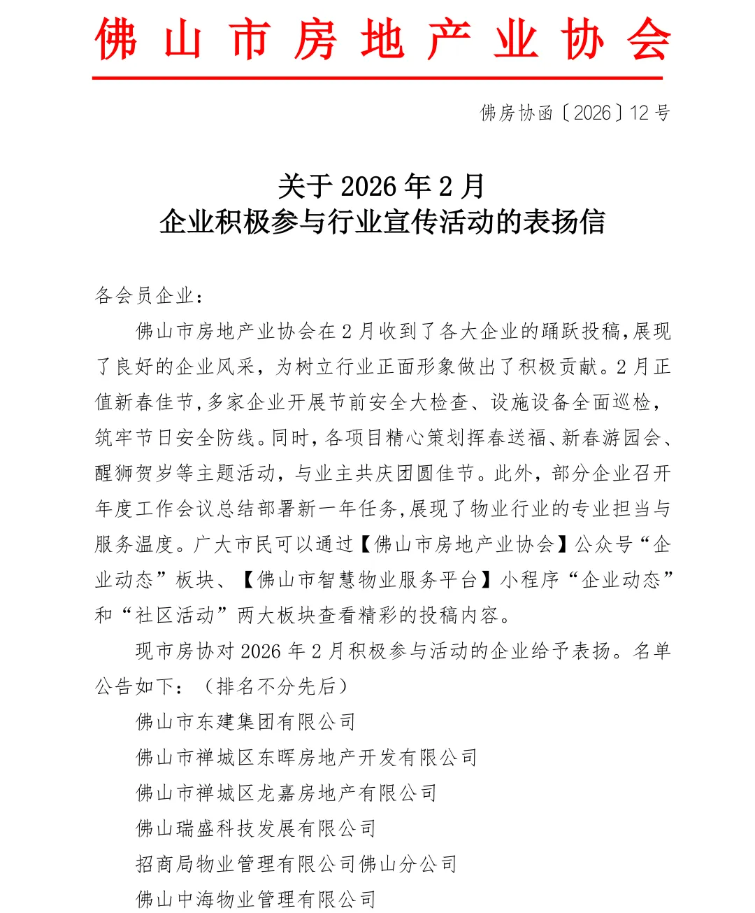 【表扬信】关于2026年2月企业积极参与行业宣传活动的表扬信