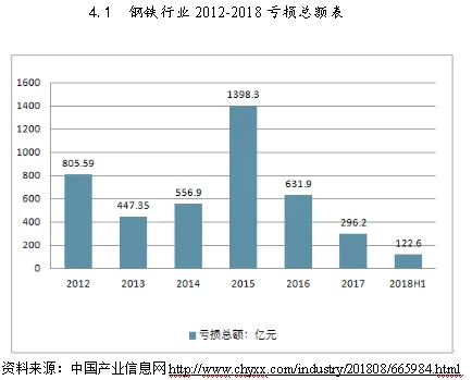自去产能,调整经济结构的政策出台,供给侧结构改革启动后,钢铁行业总体呈现亏损状态,有部分企业甚至破产倒闭,也有一部分通过兼并重组获得新生。[20]根据中国产业信息网的整理数据来看,钢铁行业亏损在2015年出现峰值后,有逐年下降的趋势。