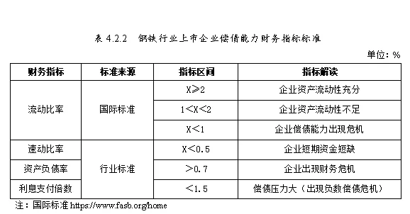 选取上述经筛选企业的财务指标流动比率、速动比率、资产负债率、利息支付水平,按照国际标准、行业标准作为筛选依据,进行第二步甄别。筛选标准参考如下: