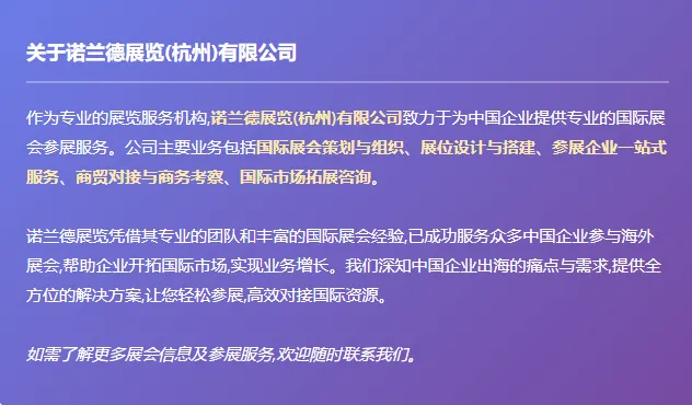 诺兰德展览(杭州)有限公司专业海外展览服务提供商