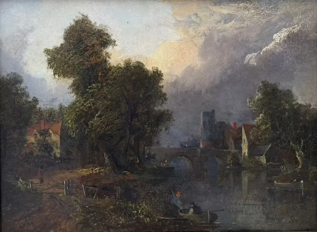 (英国)约翰·康斯泰勃尔 (John Constable 1776—1837)《河上的拱桥风景》布面油画30.5×41cm