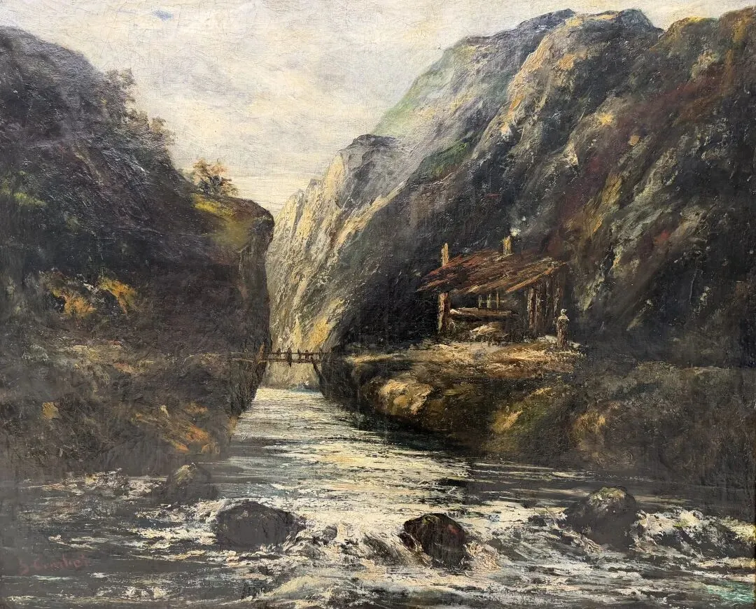 (法国)居斯塔夫·库尔贝 (Gustave Courbet 1819-1877)《河上木桥》布面油画 58×71.5cm