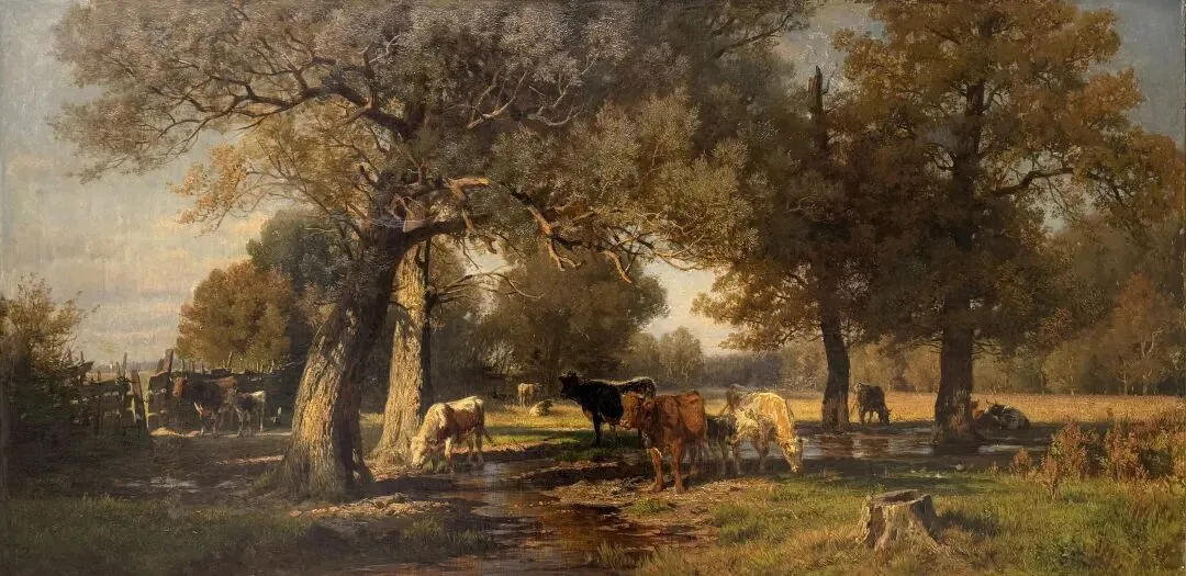 (德国)保罗·韦伯 (Paul Weber 1823-1916)《盛夏田园牧歌》 布面油画 60×116cm