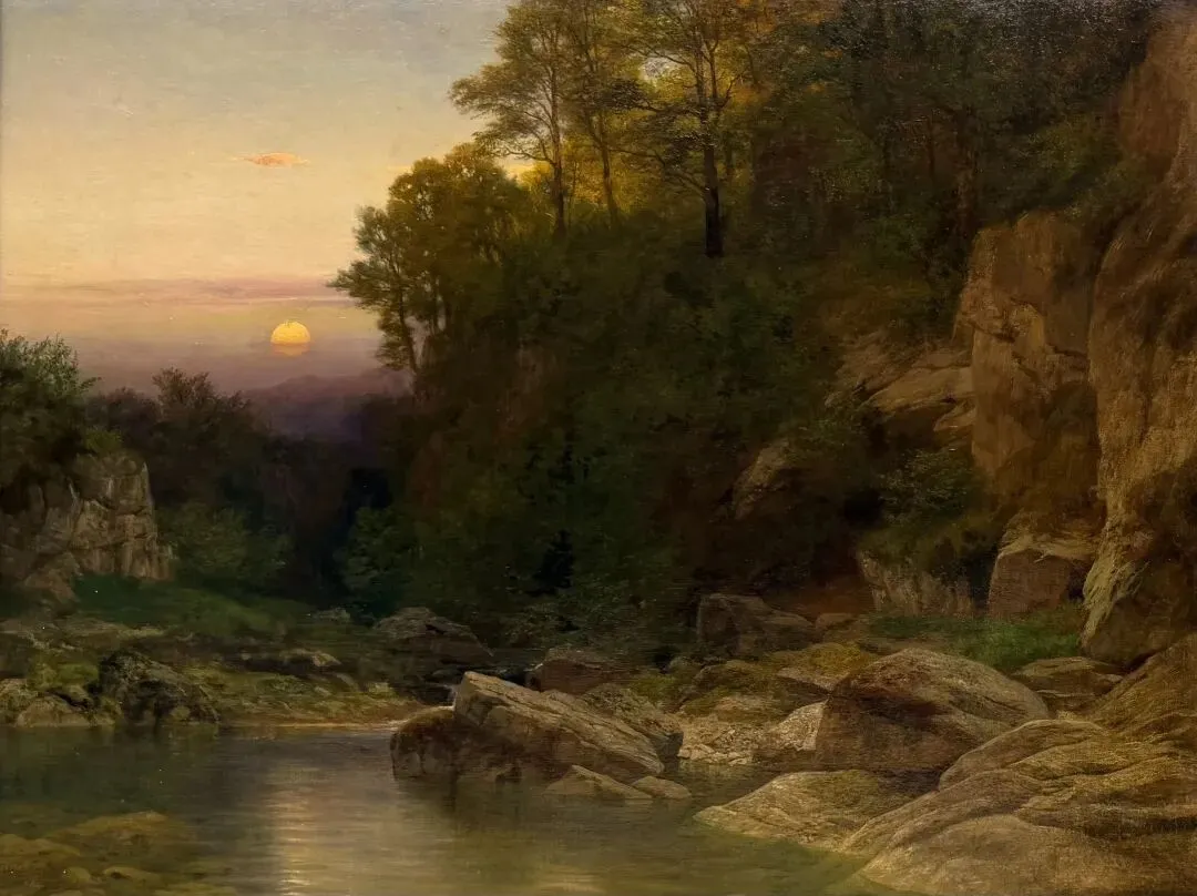 (瑞士)约翰·戈特弗里德·史蒂芬 (Johann Gottfried Steffan 1815-1905)《湖边岩石》 布面油画 81×108cm