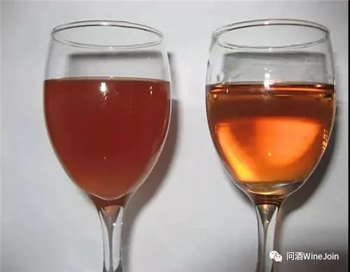 36. 葡萄酒对比,经过下胶过滤的葡萄酒颜色更为透亮澄净。