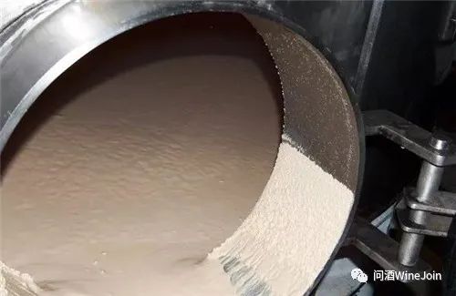 29. 下面是白葡萄酒发酵结束后,发酵罐中残留的物质,其中有死酵母的细胞。这部分物质就是“酒泥”,但初步沉淀下来的叫粗酒泥。部分风味简单的白葡萄酒,可以通过酒泥接触获得更多的酵母风味。
