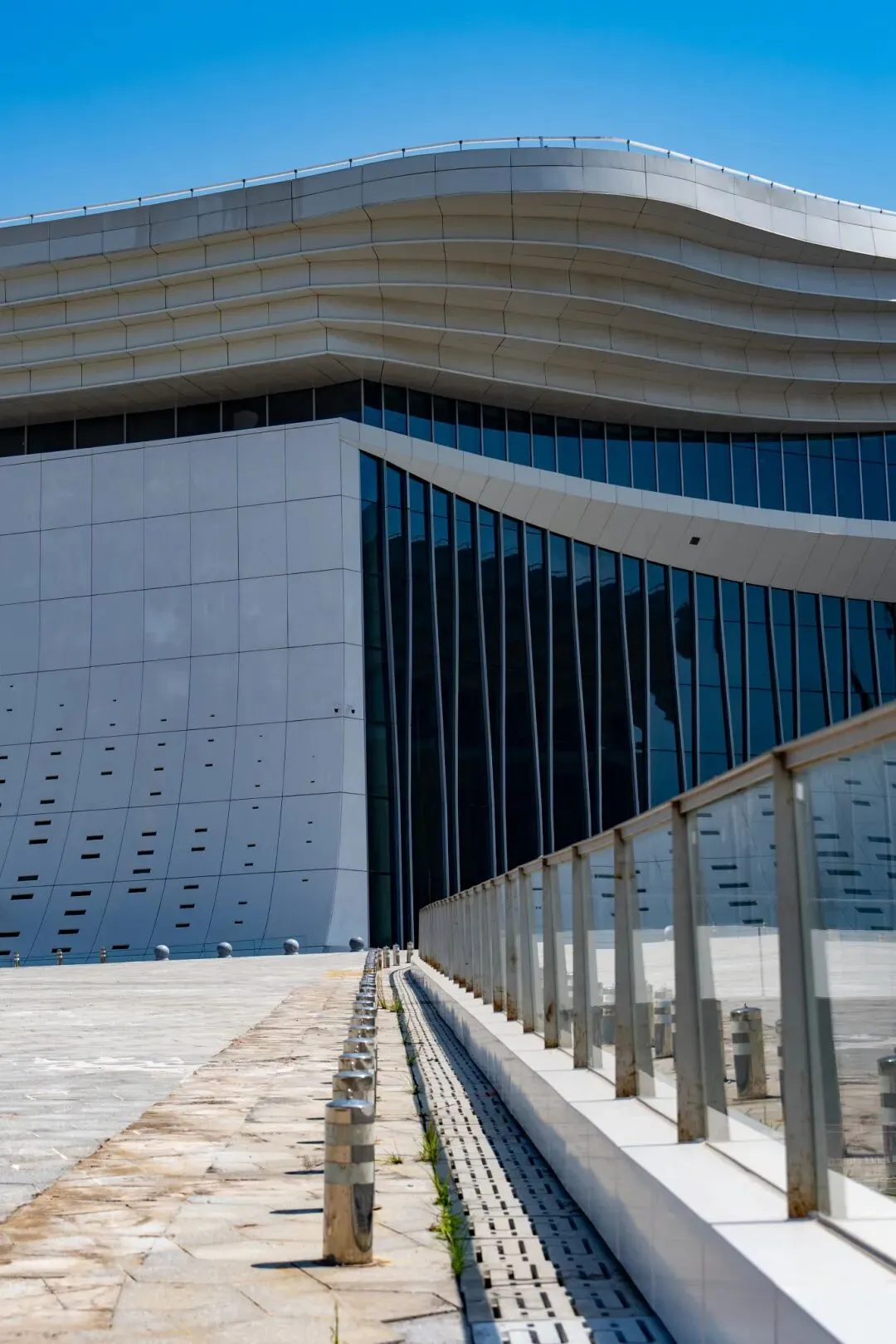 坡道两侧的幕墙线条利落大方