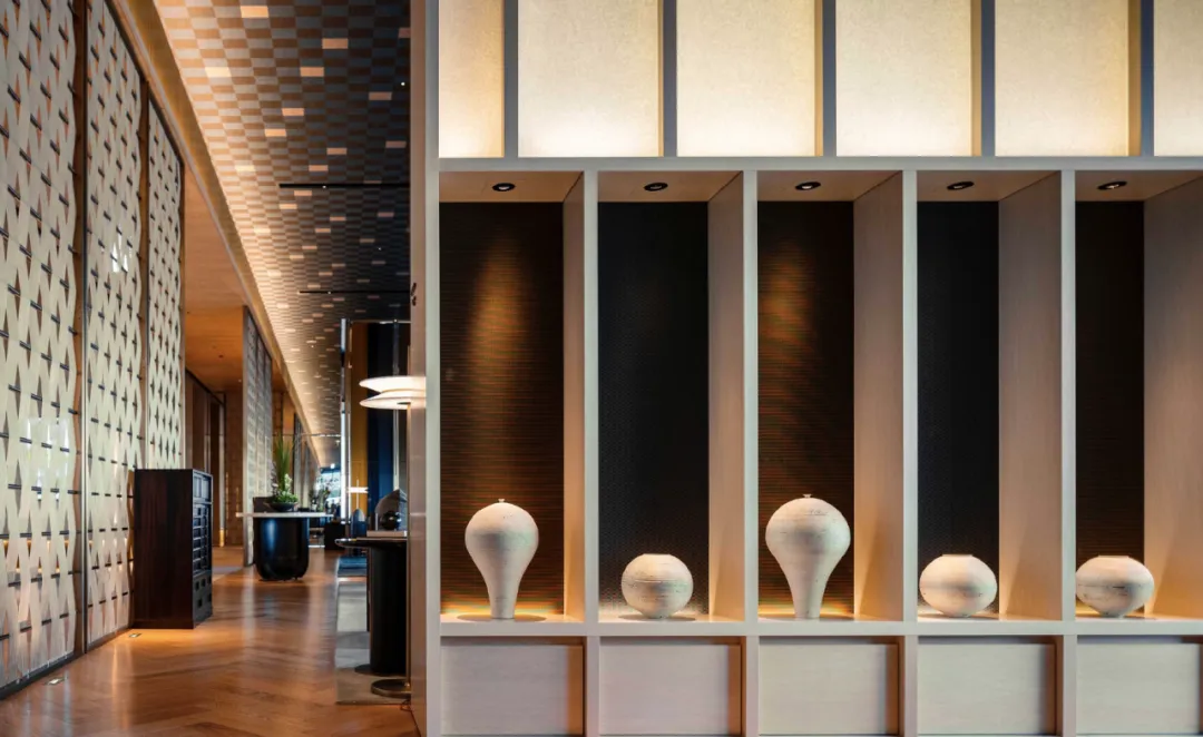 该沉浸式空间由吕邵苍先生发起、上海博华展览主办。吕邵苍作为云隐东方·院创始人兼产品总设计师,将东方禅意、水墨意境与现代商业功能深度交融。展区以原木、竹编等自然材质打底,搭配传统形制,还原留白意境。智能光影系统让水墨屏风随动线流转出层次,既满足现代旅居舒适感,又传递“天人合一”的东方审美。