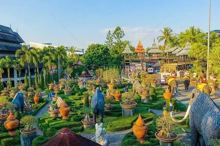 东芭乐园位于泰国旅游胜地芭堤雅市附近,占地甚广。园中有人工湖,水光潋滟,小河缭绕于亭台楼阁之间,树木葱茏,鸟语花香,景色如画。园中设有文化村,是集中展示泰国民族文化的场所。园内节目三大部分:一是泰国的民俗表演;二是大象表演;三是植物园。民俗歌舞很质朴、很地道,表演者就是村寨中人;大象表演格外精彩。