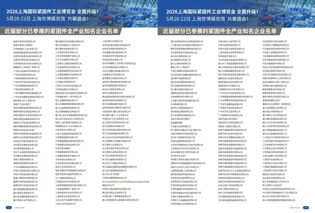 1. 1号馆(25000㎡):聚焦紧固件生产基础环节,展品包括原辅材料、制造设备/辅助设备、模具/耗品/检测设备、热处理/包装装配技术及服务等。