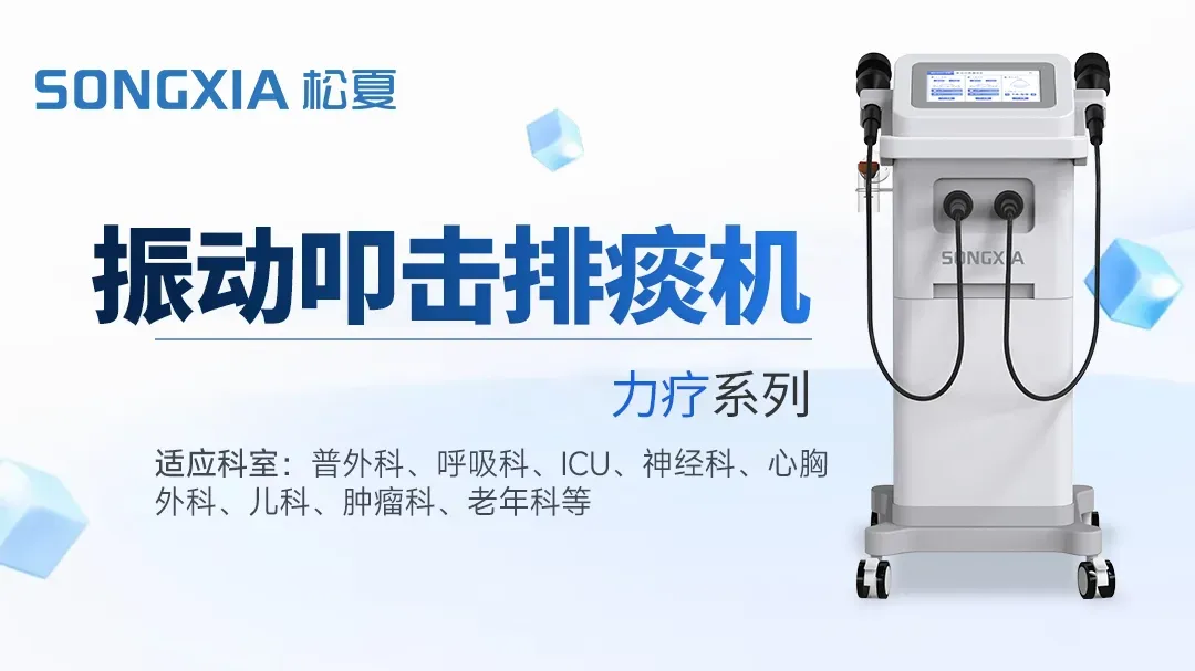 松夏力疗系列振动叩击排痰机,通过机械振动模拟人工叩击、震颤与挤推的手法,产生定向治疗力,可穿透胸壁组织,促使痰液松弛、液化并定向排出,有效改善肺部通气、预防肺部感染。设备具有成人/儿童双模式、操作流程清晰、治疗参数可调,可针对术后卧床、慢阻肺、支气管扩张等排痰困难人群开展气道廓清治疗。