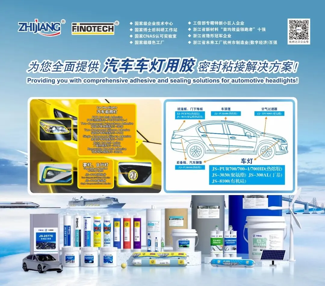 杭州之江深耕汽车照明领域,以专业技术与可靠品质,为广大汽车客户提供安全、高效、稳定的汽车照明整体解决方案,助力汽车照明系统实现更优密封、粘接与耐久性能,为汽车品质与安全保驾护航。