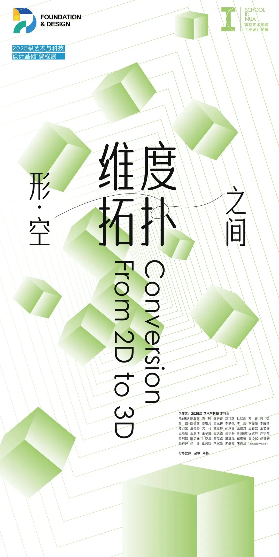 南京艺术学院工业设计学院·艺术与科技专业2025级本科一年级「形·空之间」课程展。这是2025级新生们踏入本科学习的第一课,既回望深厚的造型传统,更指向未来的设计疆域,是一次关于“转型”的集体实验,更是一次从“看见”到“创见”的思想重塑。