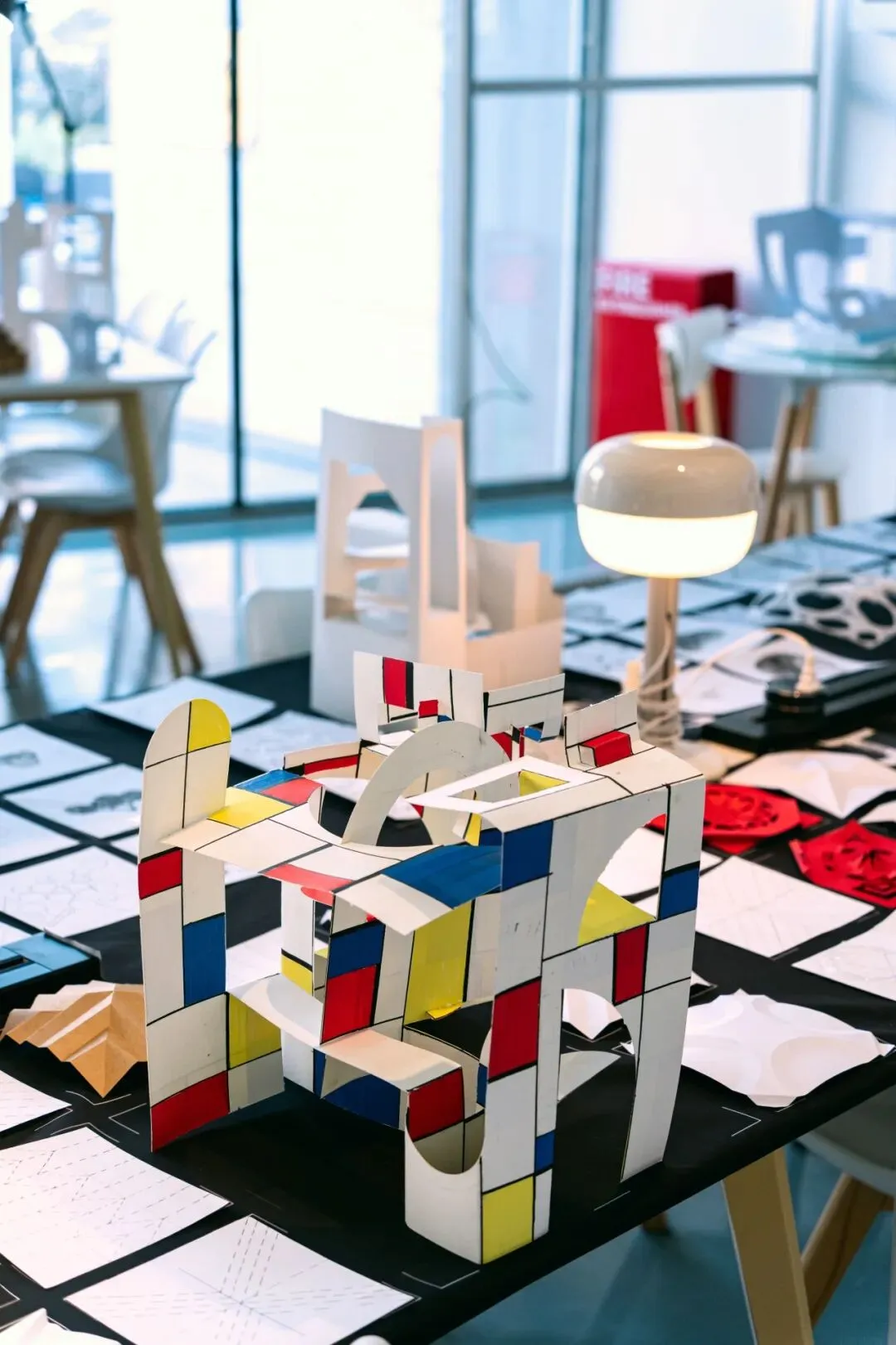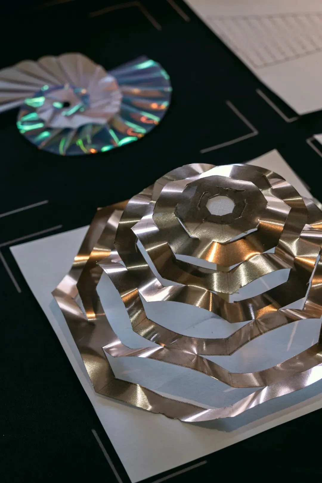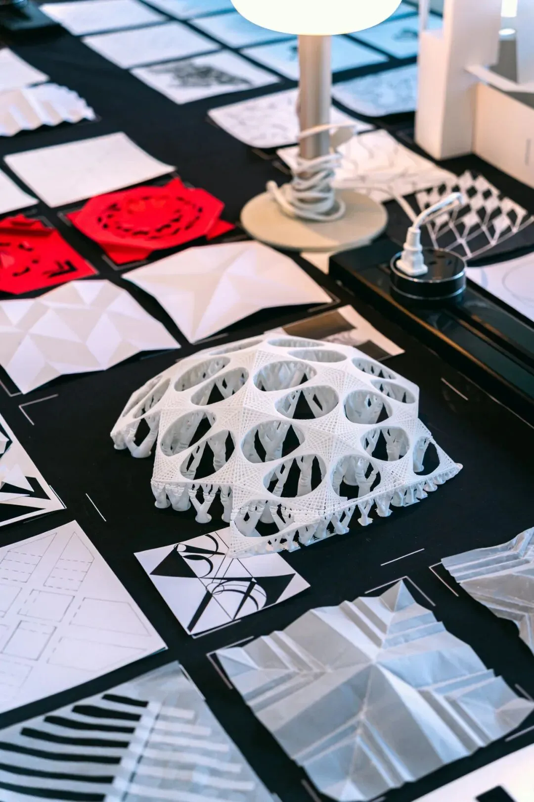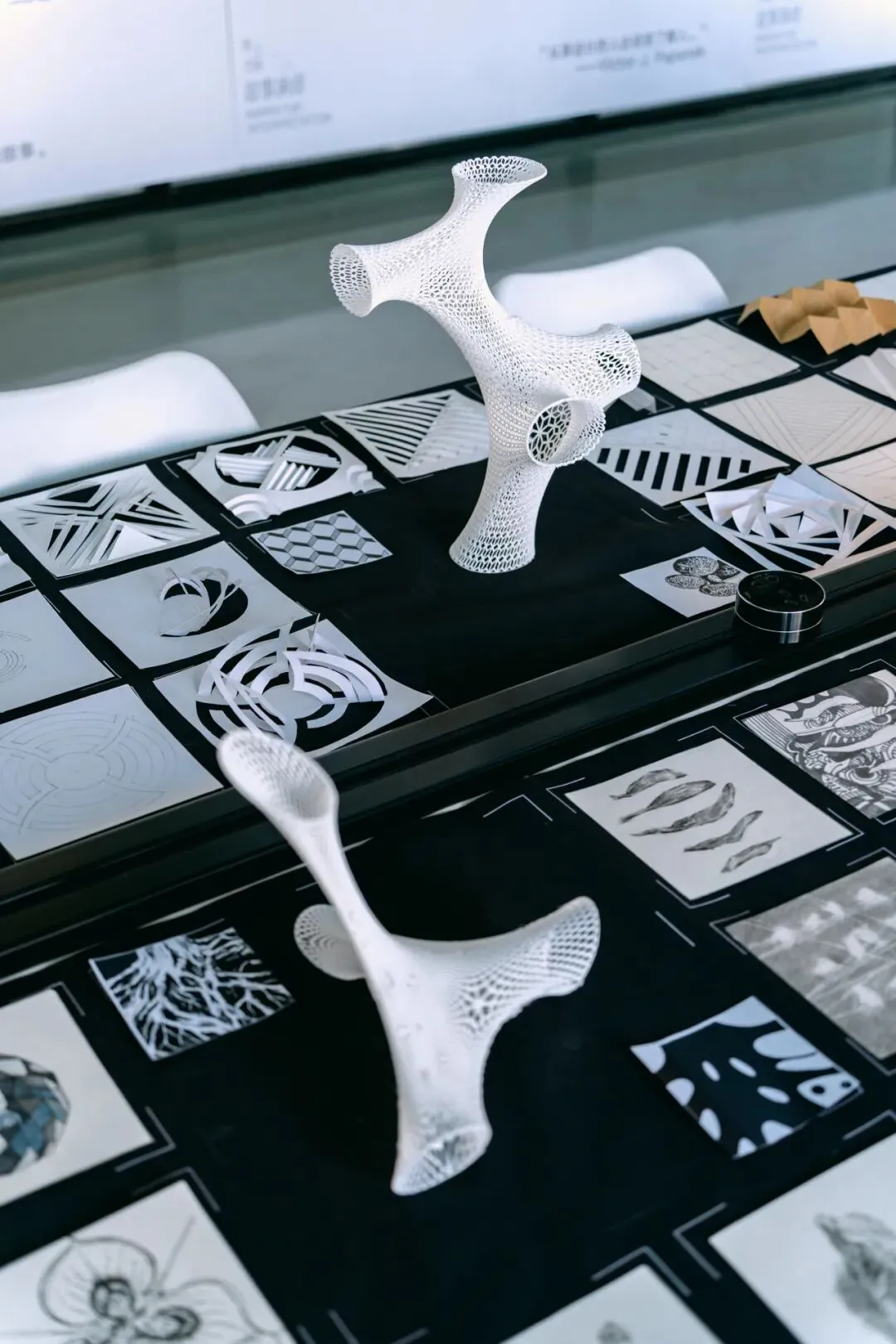 在“不改变纸张整体结构”的限制下,同学们通过精密的计算与多维度的翻折、穿插,让单薄的纸面在光影中立起,形成错综复杂、结构精巧的多维立体模型,训练了的基础的空间逻辑与动手能力。
