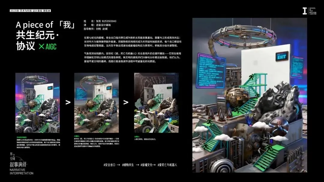 从择物到构成,最终抵达综合叙事—— 这一完整的闭环,标志着学生们初步掌握了以设计传达思想的语言。