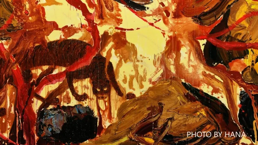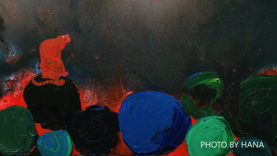 直观地指向黄礼收绘画中那些极具识别性的视觉核心一一那些游走、隐藏、闪现在画面上的异兽与神兽形象。