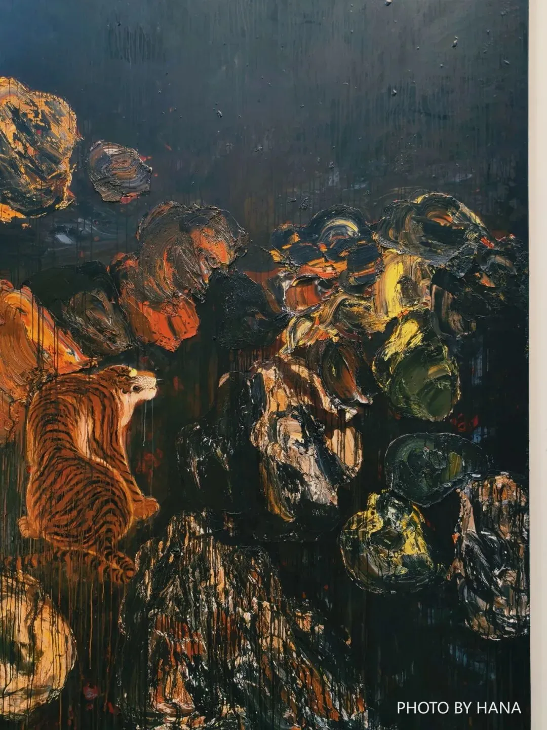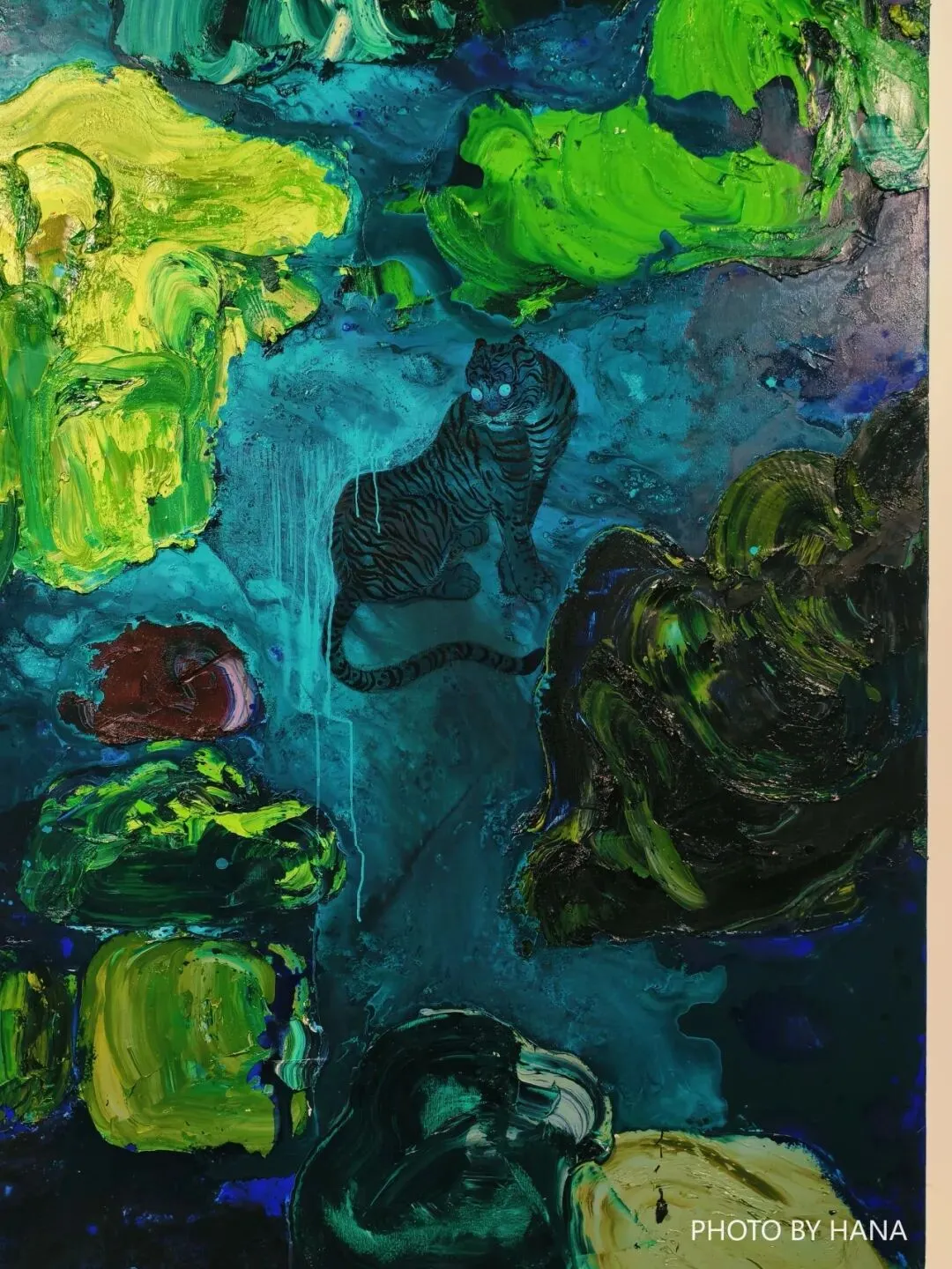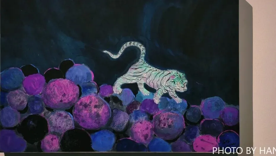 #个人感觉很有《怪化猫》的那种浮世绘感觉,虎豹龙都充满了野性张力又很动态。就很像在梦里会出现的场景,也看到到孤寂或是隐秘或是神祇的肃穆。把最喜欢的一幅作品放在封面了,这张真的很有反转胶片的质感。