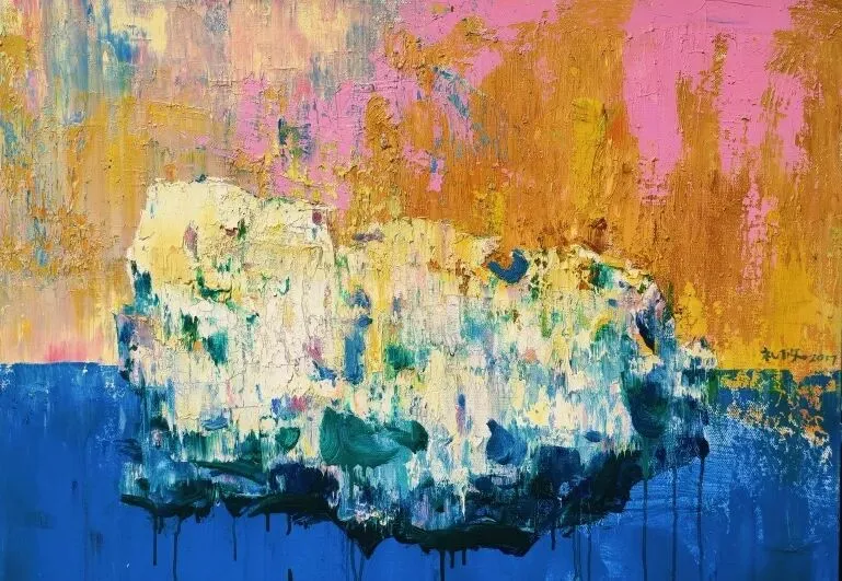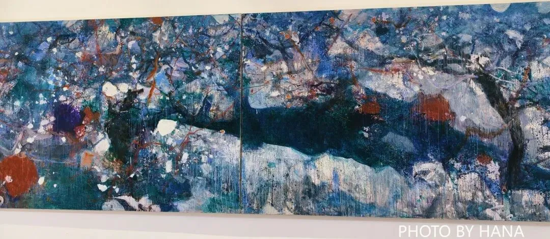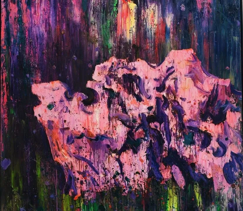黄礼攸正是从湖南张家界的一处叫做渡船坡的桃花林地开始,逐渐在绘画中打通了人、世界与作品之间的精神连接。在他的作品中,神兽、桃花、山石融为一个个“秘境”,一幅幅自成一体的“宇宙”。