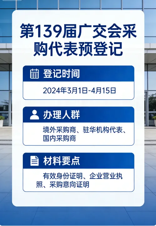 本届广交会进一步规范办证服务,境外采购商的中方陪同人员,不再办理采购代表证,统一改为办理境外采购商陪同人员证。这类证件的预登记通道将于4月份开放,具体登记时间、材料要求及办理流程,后续会通过官方渠道发布通知,大家可以持续关注,避免错过登记时段。