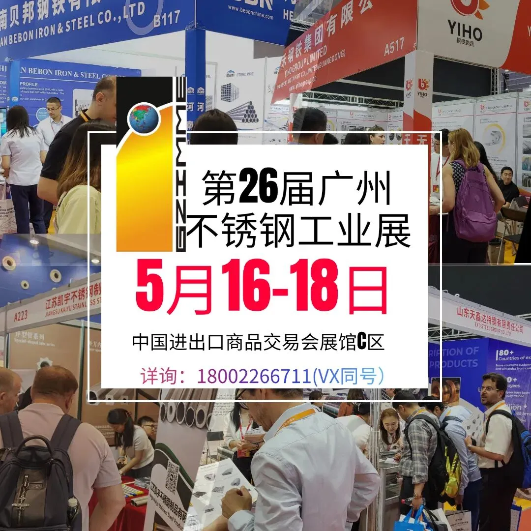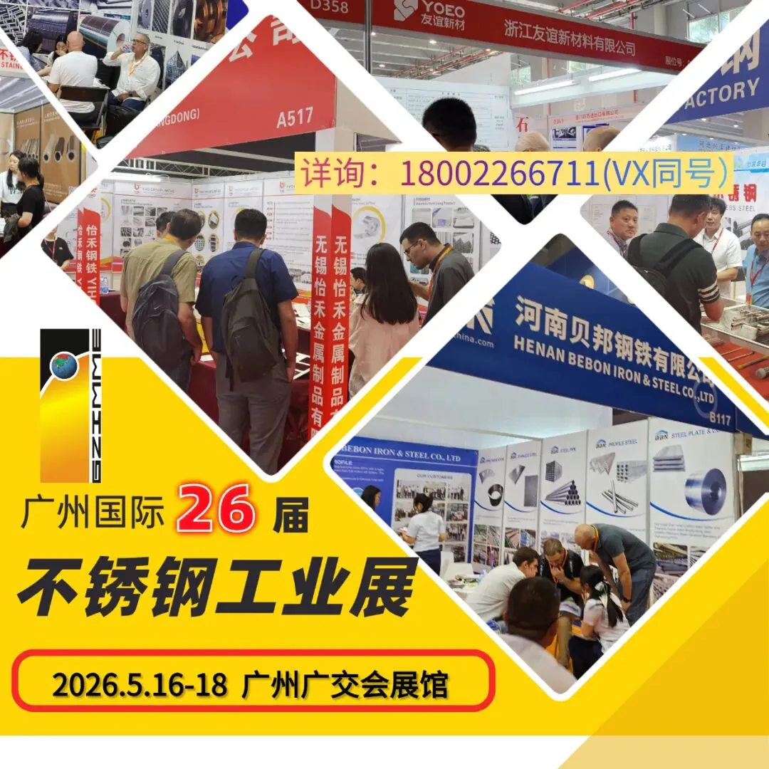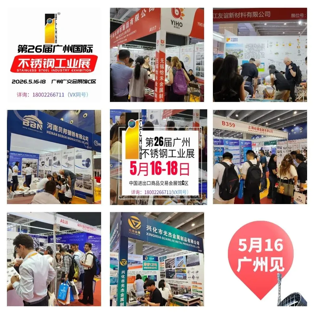 第二十六届广州国际不锈钢展将于2026年5月16日至18日在中国进出口商品交易会琶洲展馆举行,我们真心希望您带上精英的团队,大气亮丽形象和高新技术的产品来展示,因为我们为您做好了一切准备。