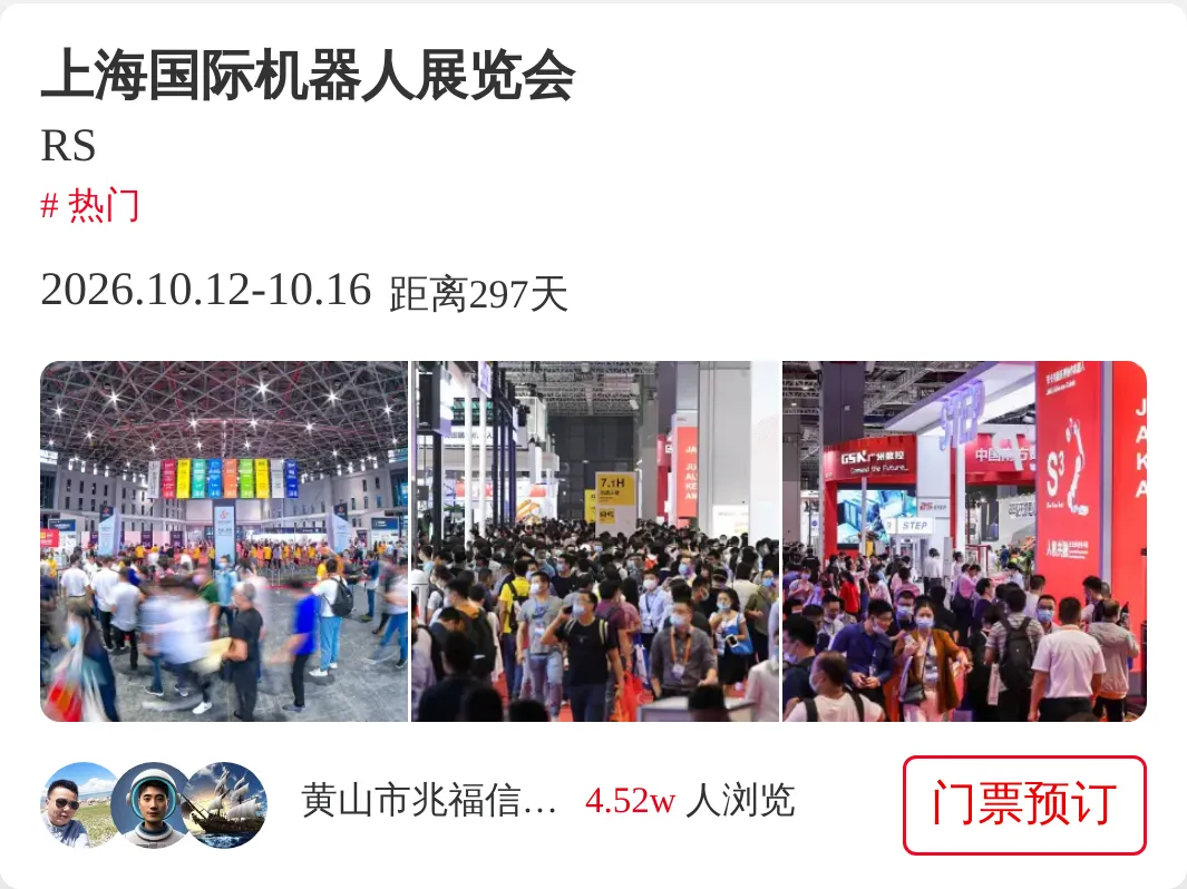 上海国际机器人展览会(RS)汇聚全球的制造商和终端用户、始终服务于行业应用,展商和专业观众数量屡创新高、质量国际一流,创立专业展行业新标准;是全球或全国新品首发及创新技术发布的首选平台,已被誉为世界第一大机器人行业展。(本文内容版权归属聚展所有,未经同意,禁止转发)