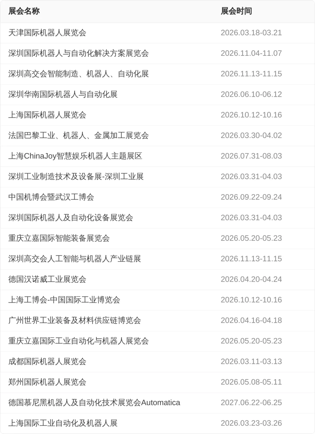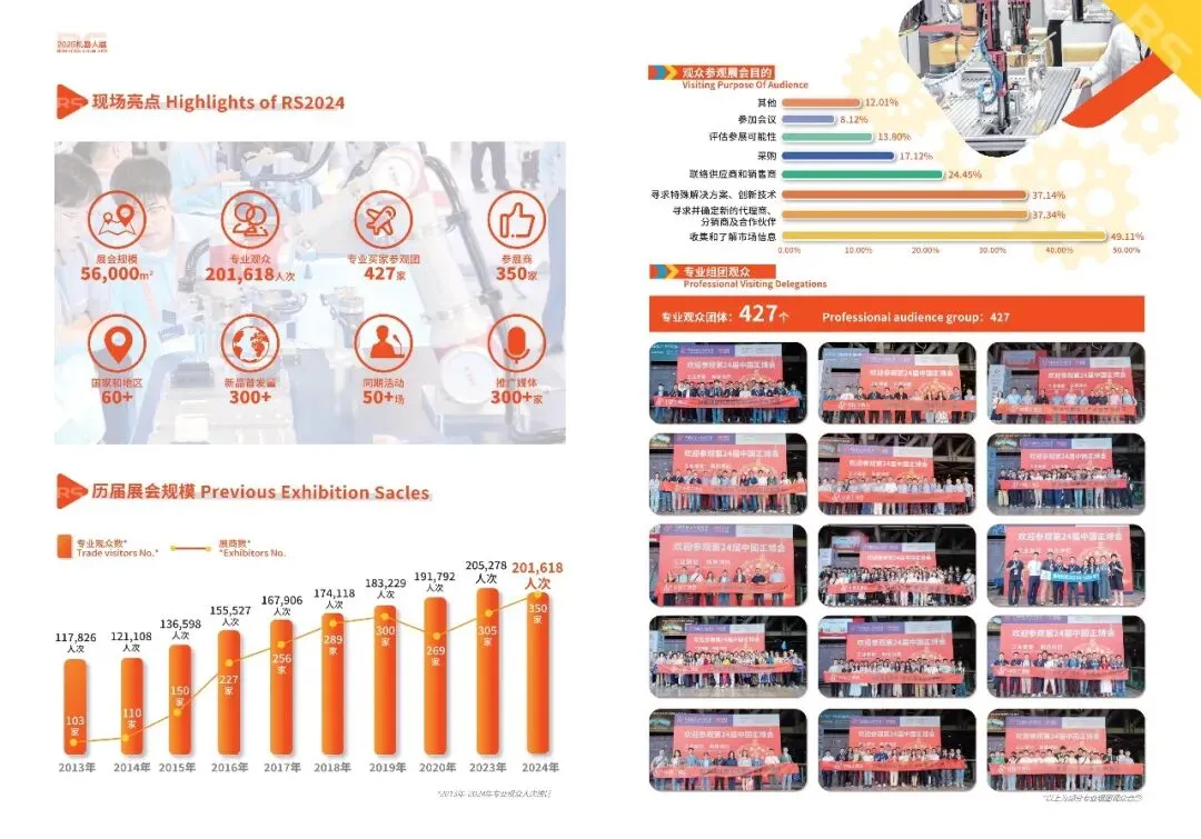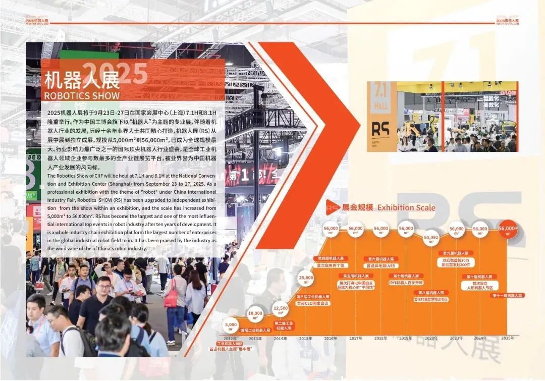 上海国际机器人展览会(RS)从2012年设立机器人展区,2013年首次独立设主题展为工业机器人展,2015年更名为机器人展,2016年首次在展内设立服务机器人体验专区和高校科研创新展示区,2017年设立“中国馆”和“国际馆”,到2018年深化“中国馆”和“国际馆”主题",已成为机器人行业风向标、持续引领行业发展新趋势。