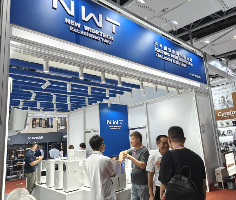 荣获电子家电产品出口百强企业(家电产品2022年十大出口企业)名单中十大空调出口企业之一的开平威技电器有限公司向广大采购商展示了移动式冷气机及除湿机,相关负责人说:“我们始终秉持着‘环保、创新、诚信’的理念,积极开发新产品,对于本届广交会,我们相当有信心能抢到订单。”