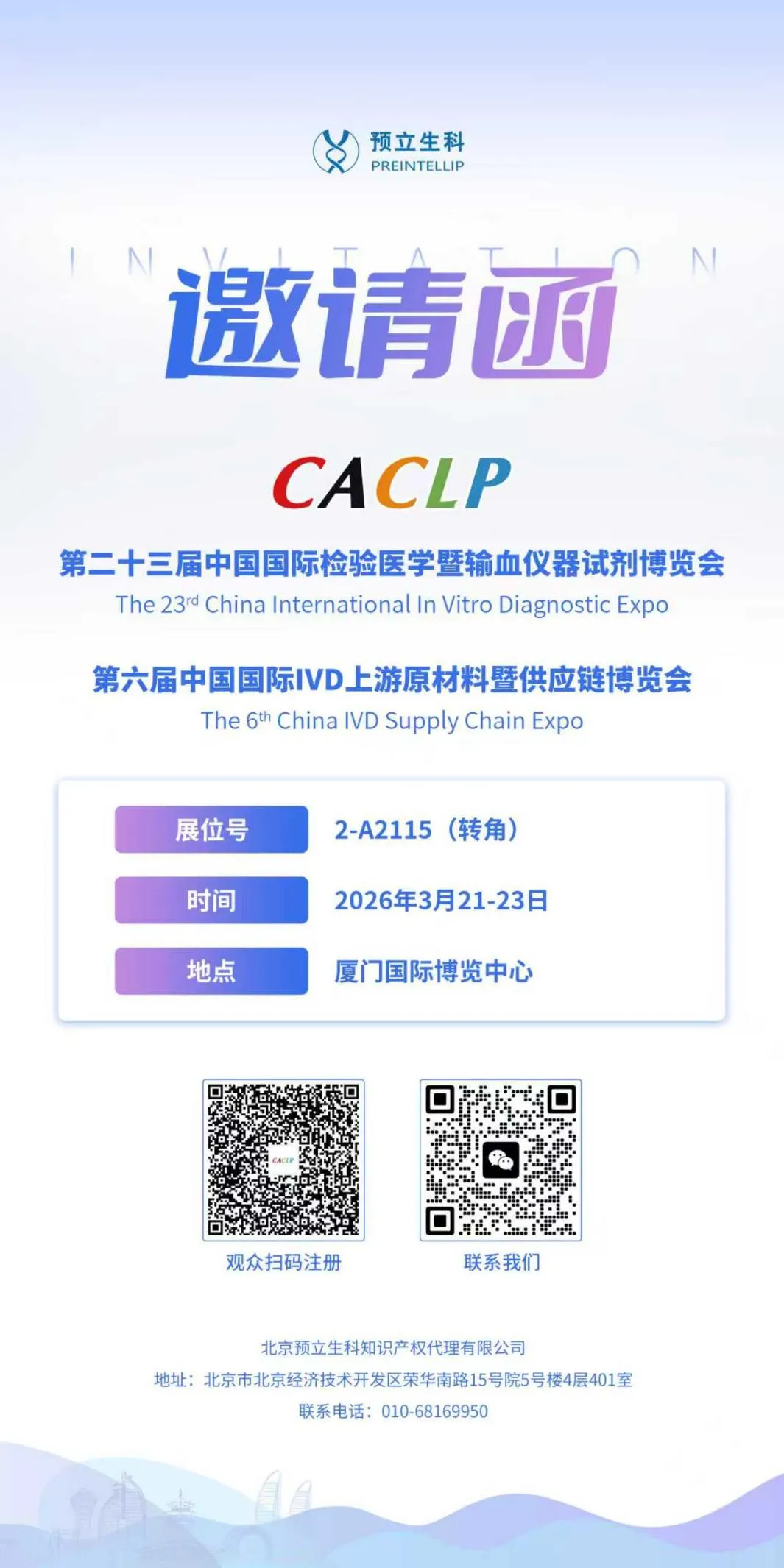 第二十三届中国国际检验医学暨输血仪器试剂博览会(CACLP)将于2026年3月21日-23日,在厦门国际博览中心隆重举行。
