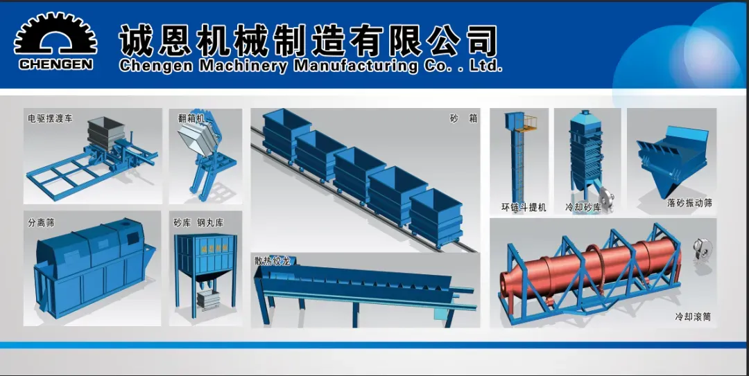 河北隆尧县诚恩机械制造有限公司成立于2006年,位于河北省邢台市隆尧县固城镇,是一家专注于生产制作铸造生产设备的公司。诚恩机械自成立以来,始终坚持以人才为本、诚信立业的经营原则,在壳型铸造自动生产线领域(即覆膜砂流水线、消失模流水线)已成功制造、安装设备遍布全国多个城市,诚恩机械已在铸造领域取得辉煌成绩,完成众多铸造设备配套服务,值的成为您信赖的合作伙伴。公司常年生产制造壳型铸造生产流水线、消失模生产流水线铸造除尘系统设备,铸造浇铸系统设备。生产流程适用于覆膜砂工艺以及消失模工艺。即对砂箱小车上的覆膜砂壳型或消失模壳型进行埋砂浇铸,砂箱小车循环作业,埋型砂分离再利用,组成了生产线整个循环过程。壳型铸造自动生产线大幅度提高产量与效率,减少人工,优化产品外观与质量以及成品率大幅度提升,改善生产环境,程序化作业,增强安全性。运行稳定性好,故障率低。人工使用包括浇铸人员一共为3-5人,适用性广泛,适合多种浇铸工艺,一键启动操作简单,养护方便,逐渐成为铸造产业的基础配套设施。