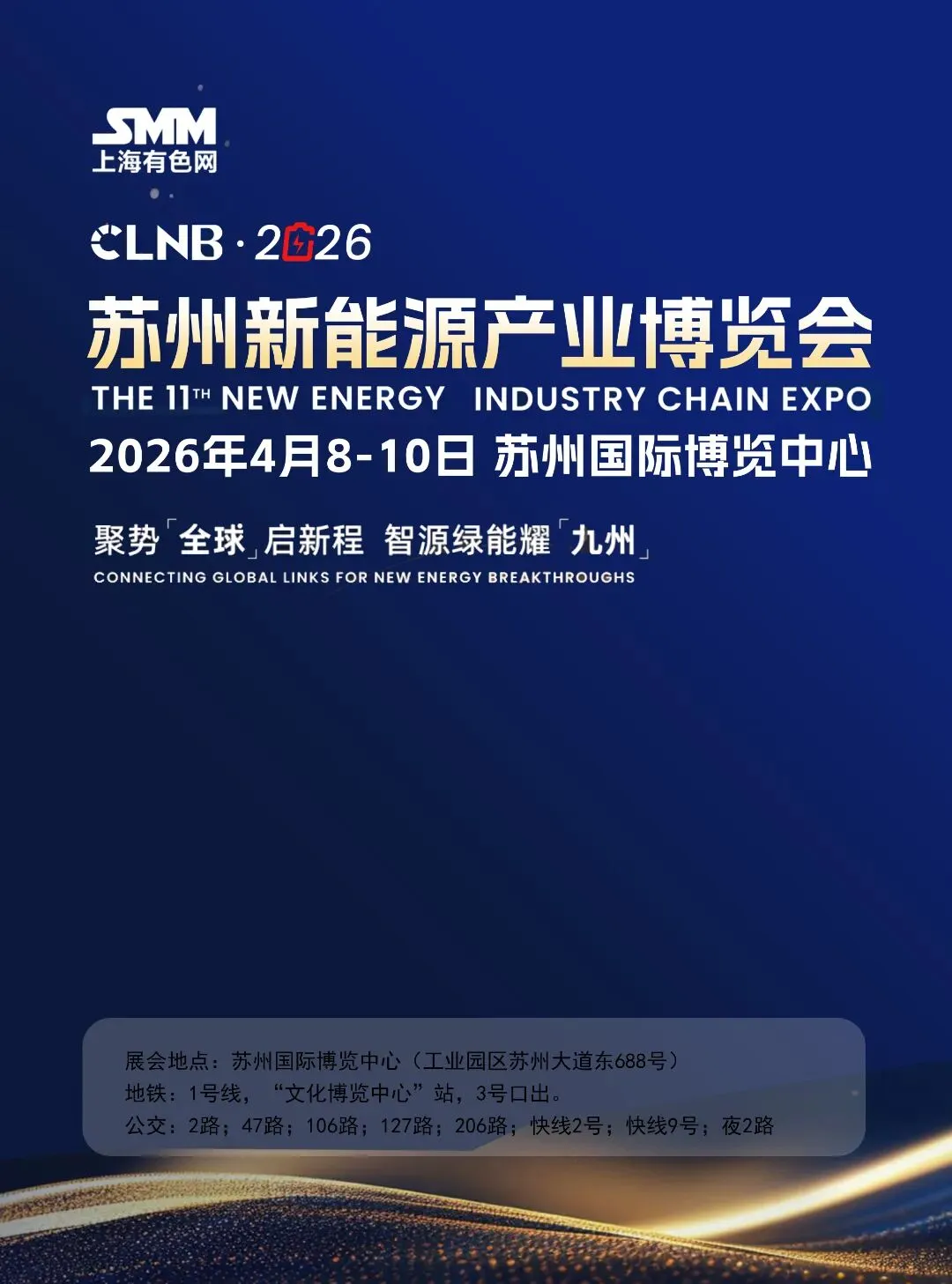 CLNB 2026第十一届新能源产业博览会将于4月8日-10日在苏州国际博览中心举办。展会将聚合全球1,500余家展商及参会企业,同时有超30,000人次专业观众,覆盖储能、电力、锂电回收、正极材料、矿业原料及固态电池低空经济等各大新兴领域。在全球能源结构加速向清洁化转型的背景下,中国“3060”双碳目标稳步推进,欧洲2030年可再生能源消费占比目标明确,全球各国家和地区的政策共同驱动下,预计到2030年,全球可再生能源供给比重或突破30%。行业现状呈现挑战与突破并存,全球储能市场2024-2030年复合增长率超过20%,新能源汽车市场渗透率持续提升。锂电产业链中,正极材料向高镍、富锂锰基升级,锂电回收龙头赣锋锂业实现95%以上镍钴金属回收率,推动循环经济闭环,中国回收产能过剩问题正逐步出清:矿业原料领域则面临锂、钴等关键矿产的ESG挑战,供应链溯源与低碳化成为国际竞争核心。未来趋势聚焦技术革新与市场融合,固态电池领域,新技术不断突破,新产品不断涌现,共同支撑未来低空经济等新兴赛道的蓬勃发展。国际化融合贯穿全链条:设立“矿业+新能源国际”专区,涵盖了国际电池原材料论坛、国际市场论坛等活动,吸引200+海外采购团来到现场,进而推动技术标准与市场资源的跨国协同。本届博览会将串联“矿产溯源-终端应用”全链条,驱动产业从“内卷”走向“共赢”成为加速全球绿色能源革新的核心枢纽。