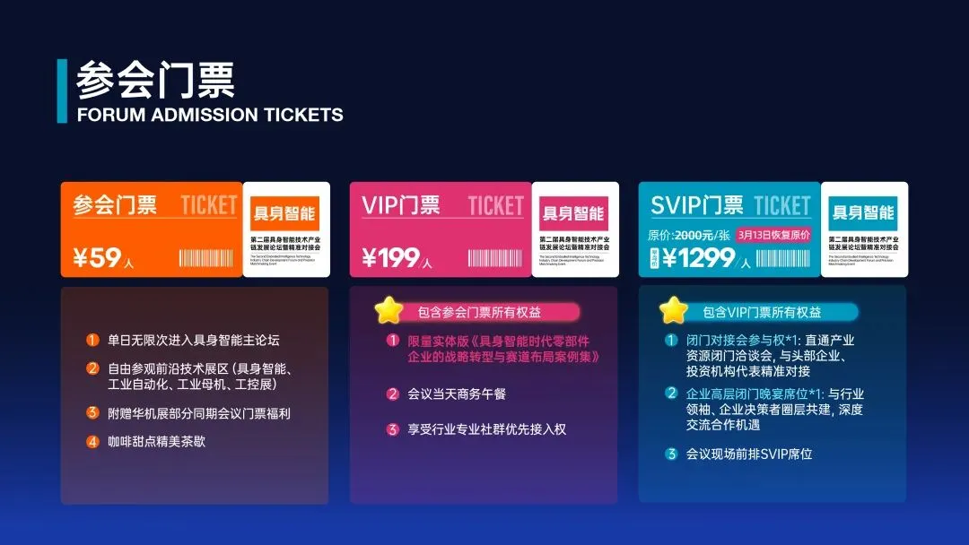 同期具身智能大会仅为3月23-24日且为付费模式。如各位朋友有参会需求,需要另行扫描下方二维码购票听会哦~(23日下午为采购对接会及闭门晚宴;24日全天为大会主论坛)