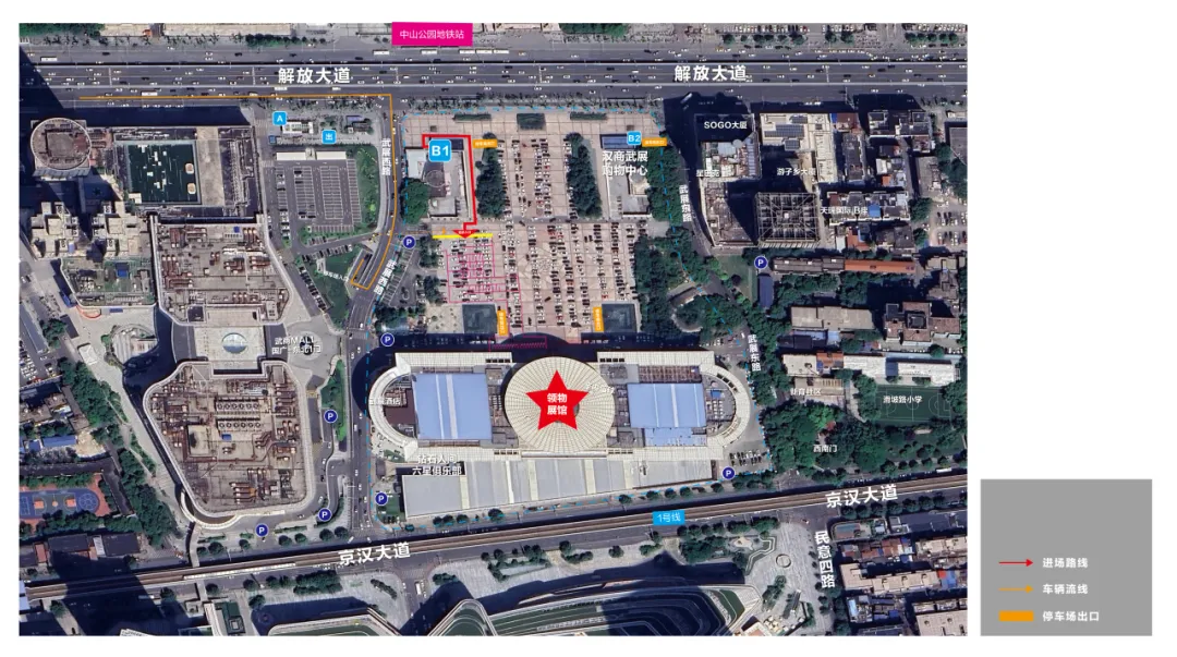 乘坐武汉轨道交通2号线中山公园站下车,从B1口出站,步行约350米,即可到达武汉国际会展中心。