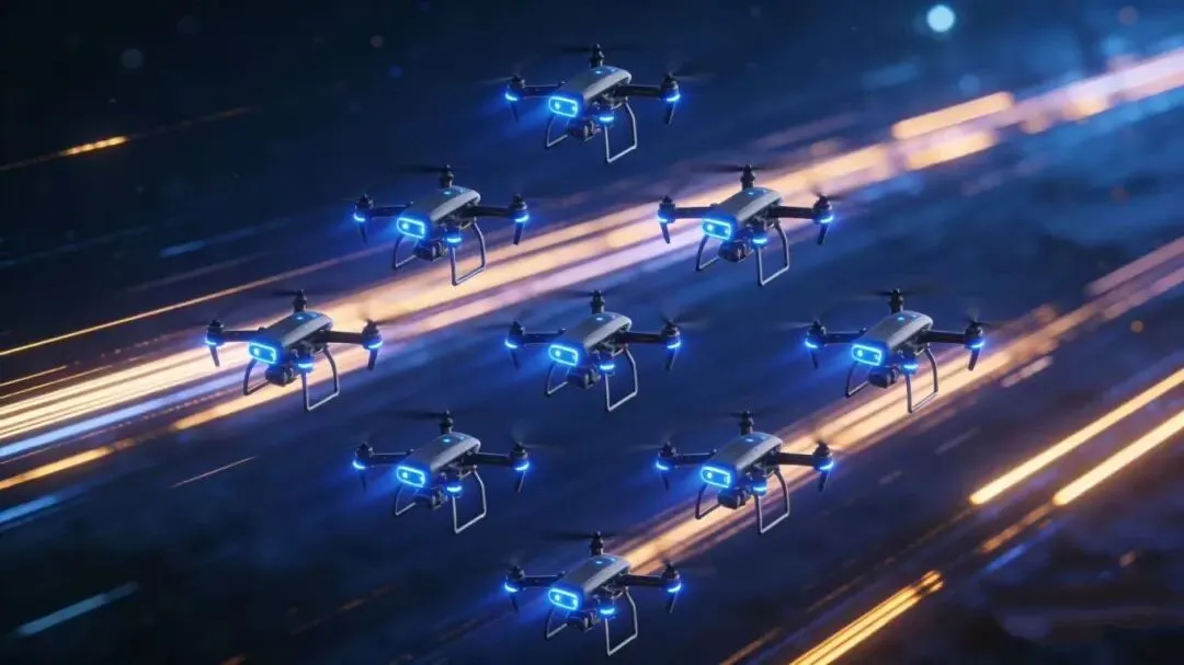 天空之舞:9台无人机编队飞行,上演精准而梦幻的空中芭蕾。