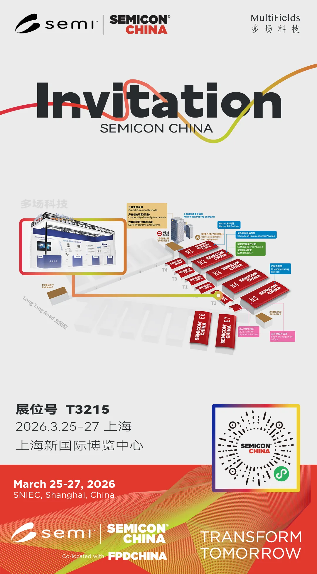 作为一家聚焦纳米级自动化领域的企业,多场科技产品应用领域覆盖半导体、量子科技、商业航天航空、精密光学等高端产业领域。本次展会,公司将集中展示面向半导体先进制造的核心技术与一体化解决方案,期待与您相聚上海,共同见证中国半导体产业发展新篇章。