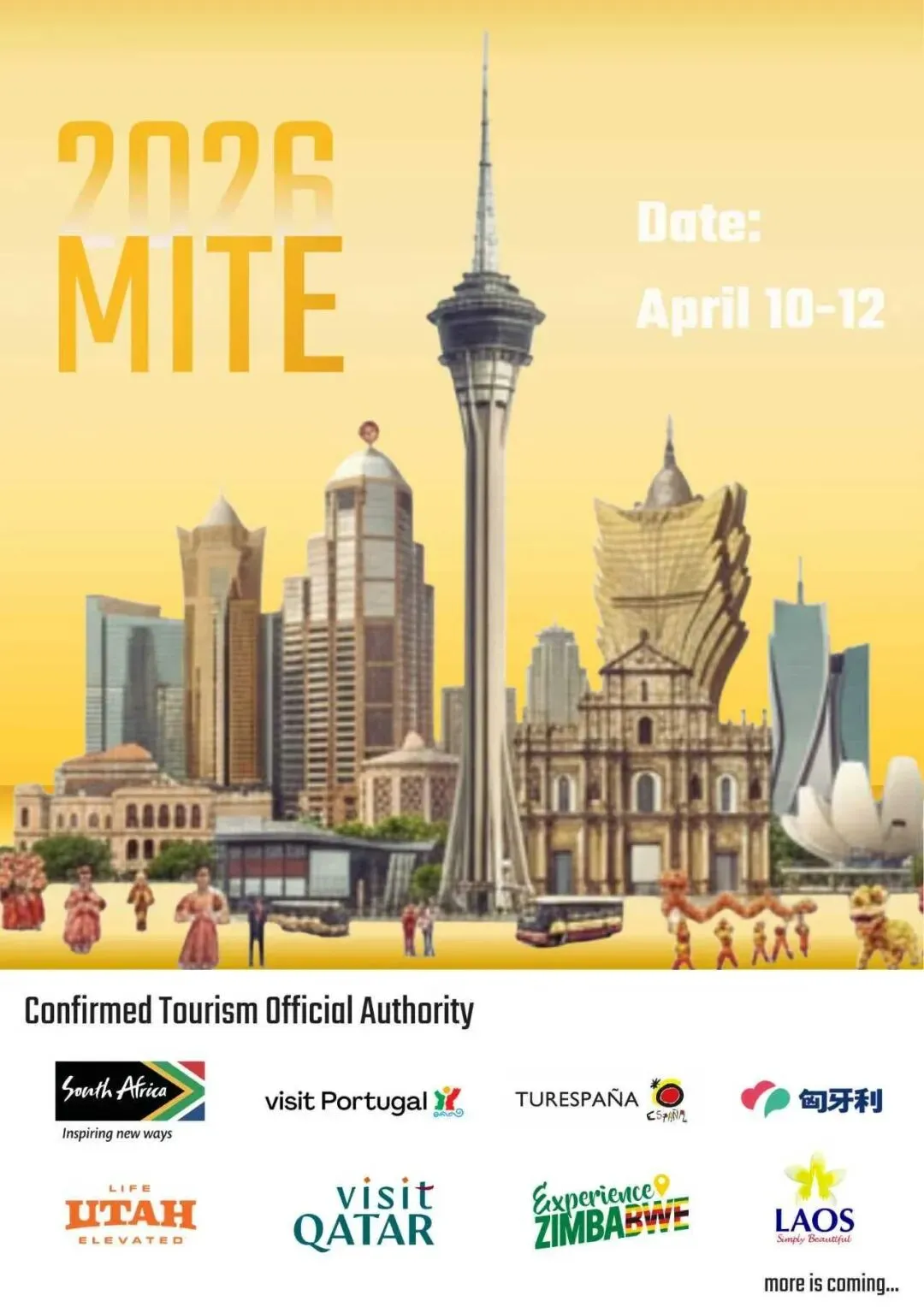 To date, tourism authorities from the following destination countries/regions have confirmed their participation in this year's MITE: Laos Tourism Promotion Center (China), South African Tourism, Spain National Tourism Office, Tourismo de Portugal, I.P., Utah Office of Tourism, Visit Hungary LTD, Visit Qatar, and Zimbabwe Tourist Office, Beijing and Hong Kong.