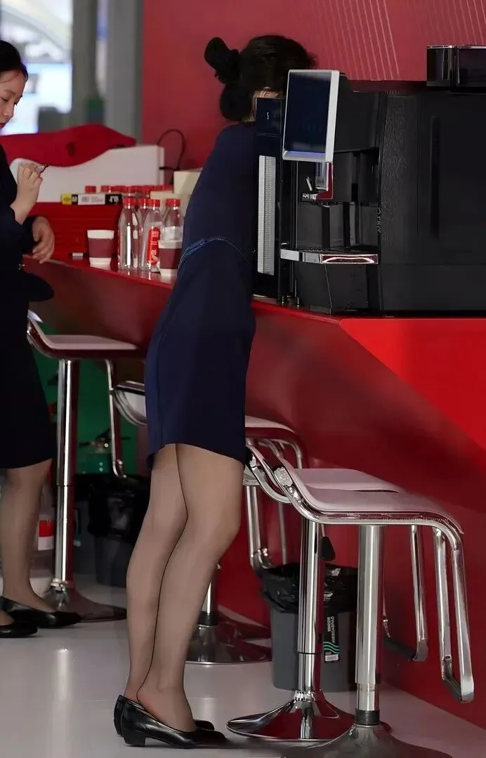 穿制服最根本的是体态。看这些小姐姐,弯腰拿东西的时候、站着和人说话的时候,背都挺得很直。好的体态会让平凡的制服有不一样的气场,人看上去就精神多了。