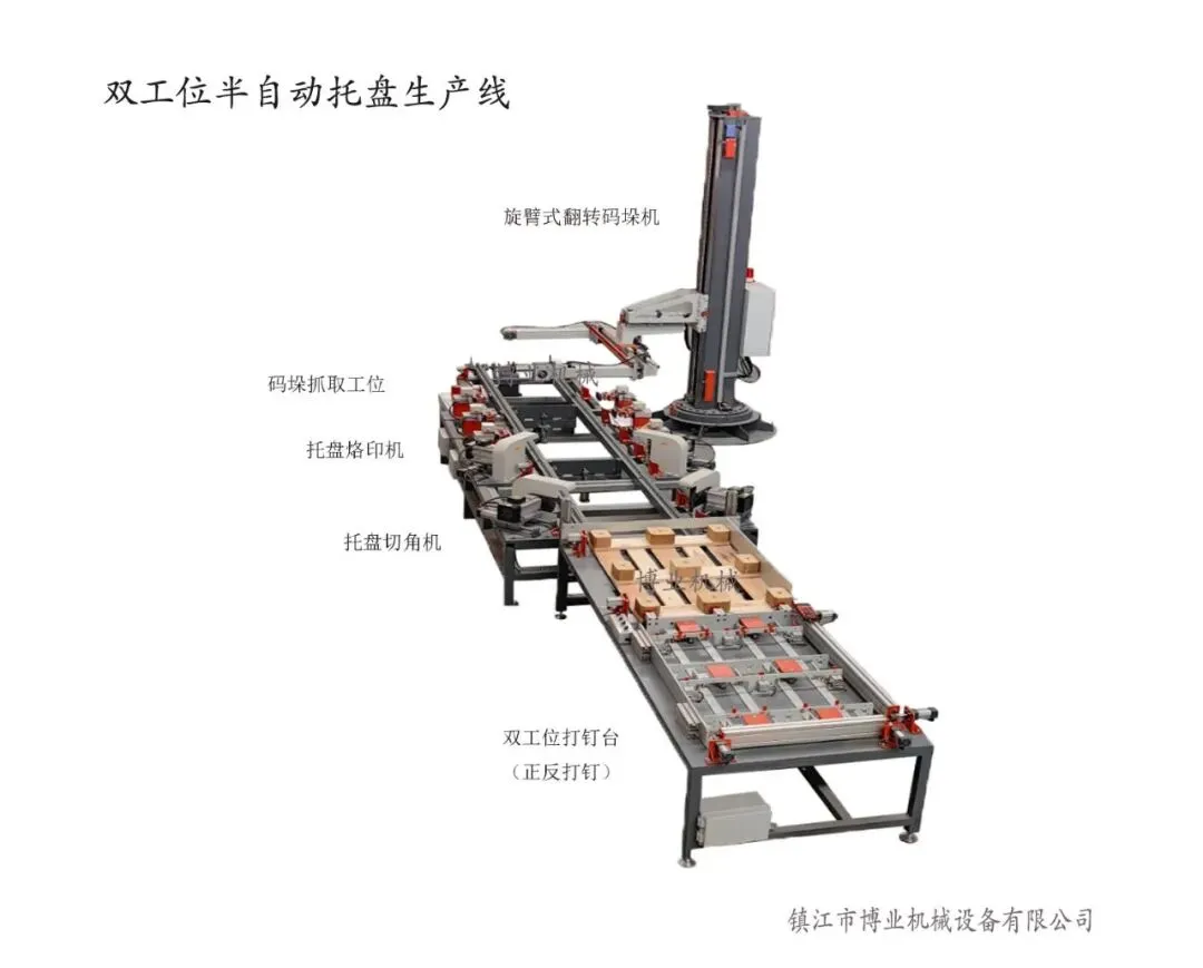 在木托盘制造领域,效率、标准化与成本控制是企业竞争力的核心。我们倾力打造的全新一代木托盘半自动化打钉生产线,集打钉工作台、工装模具、切角、烙印、翻转、码垛于一体,以智能化、标准化引领产业升级,为您开启省人、省力、省心的智能制造新篇章。