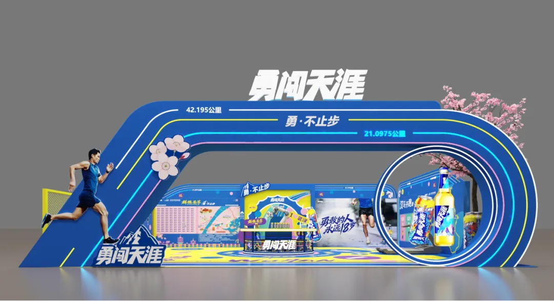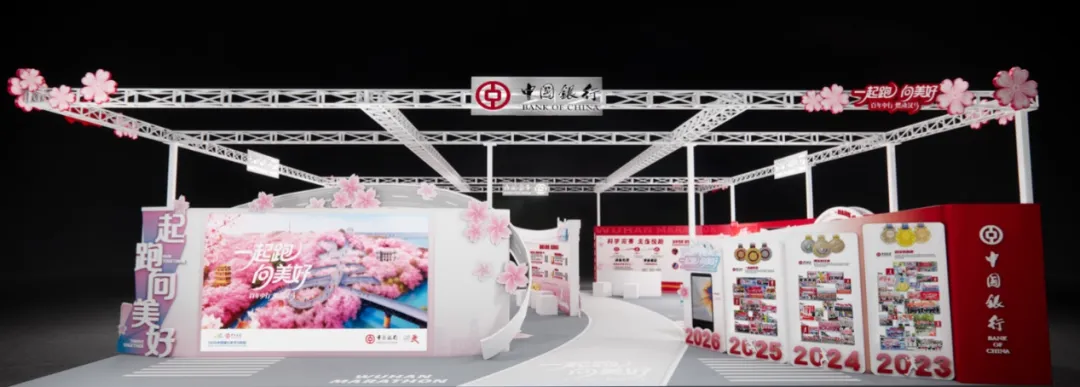 武汉金控集团展台深度结合武汉马拉松的赛事精神与武汉金控集团的品牌内核,将金融的专业稳健与马拉松的活力激情相融合,以“为产业奔跑、与城市共进”为主题,诠释 “牢记使命、建功支点,武汉所需、金控必达”的价值追求,打造一个兼具品牌辨识度与场景沉浸感的城市金融会客厅。