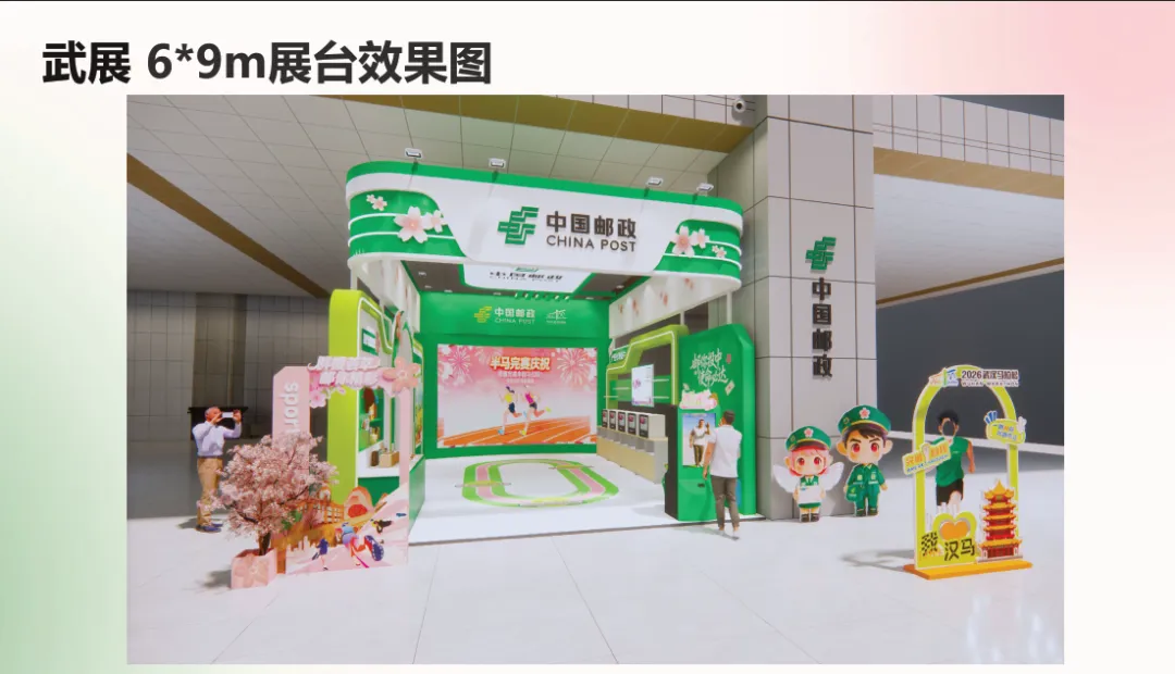 湖北邮政布展主题为“群樱荟萃 邮你精彩”。武展中心主题邮局设置互动体验区,提供机器人互动、个性化明信片打印、模拟跑道互动、投壶游戏等服务;拍照打卡区,邮政专属形象“邮小樱”“邮小政”、樱花树、江城地标等打卡留念;直播宣传区,线上宣传推广邮政文创产品;文创销售区,现场展示销售马拉松赛事专属纪念品、邮政定制文创产品。