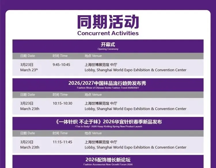 上海国际帽子围巾手套展还将联合歌华展览旗下:上海国际时尚饰品展、上海国际袜业采购交易会和上海国际内衣展览会,共同开启Fashion Accessories Shanghai 2026上海国际时尚配饰展(简称:歌华·时尚配饰展)。该活动将以供应链为基础,聚焦穿着搭配的潮流趋势发展,集多个系列时尚领域专题细分展会于一体,总展出面积达50,000平米。