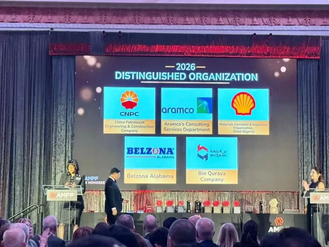 在此热烈祝贺中国石油工程建设有限公司西南分公司荣获本年度获得AMPP 2026 杰出机构奖项(Distinguished Organization)。