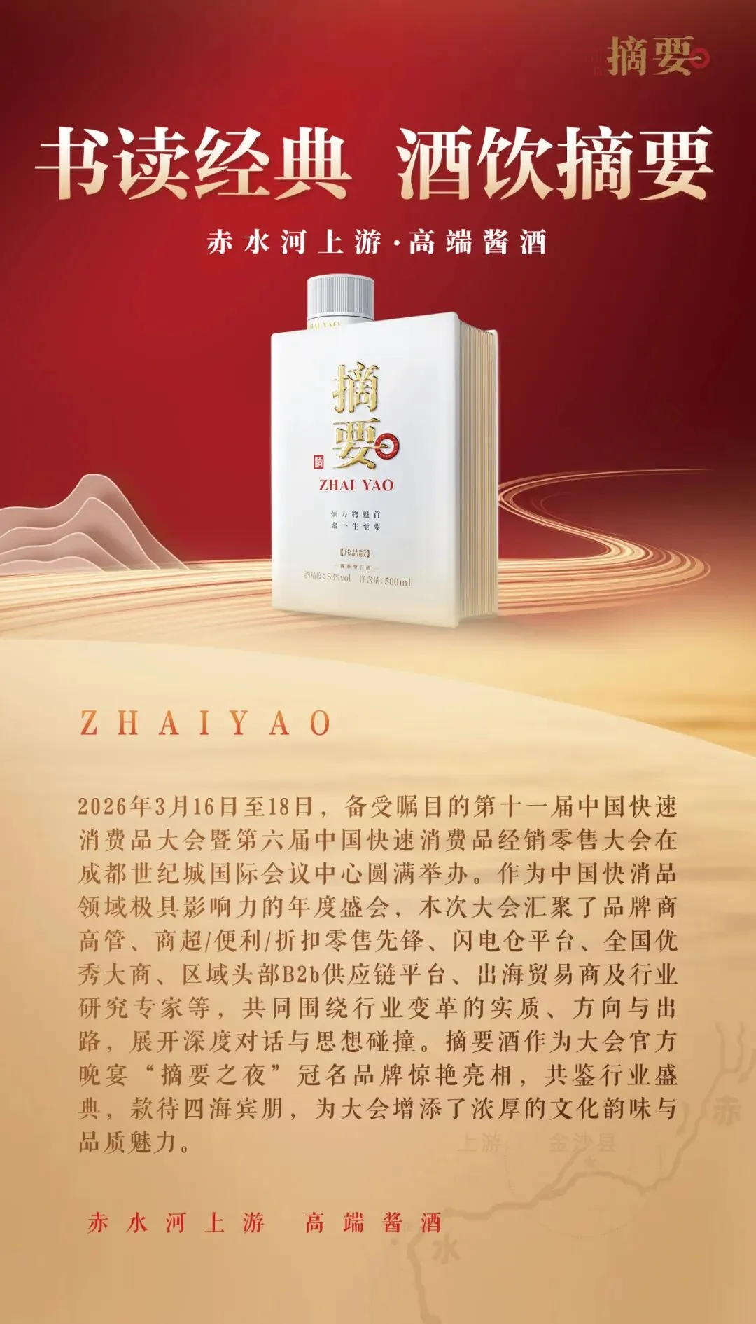 此次携手第十一届中国快速消费品大会,不仅是摘要酒品牌实力与高端形象的又一次精彩展示,更体现了摘要酒对快消品行业变革趋势的深刻洞察与发展共鸣。作为高端文化酱香白酒的代表品牌,摘要酒始终秉持“书读经典 酒饮摘要”的品牌理念,致力于将品质与文化融入消费场景,与追求卓越的消费者群体产生深度共鸣。未来,摘要酒将继续以酒为媒,与快消品行业的同仁们携手同行,在消费新世界的变革浪潮中,共同探索增长新动能,书写品牌与行业共生共荣的崭新篇章。