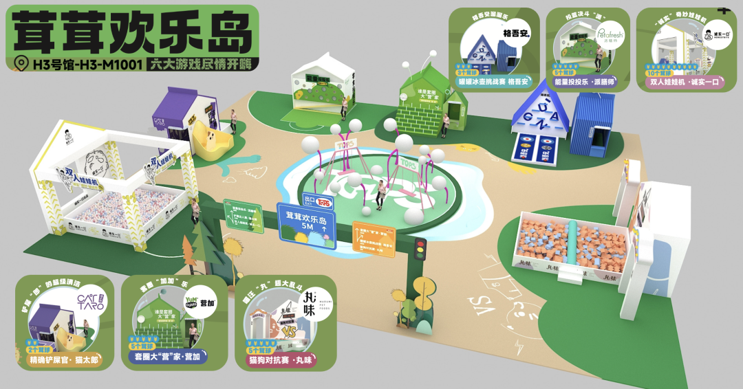 打卡展台【超愈角】,获得茸球货币?,体验位于二层H3号馆的大型游乐区【茸茸欢乐岛】