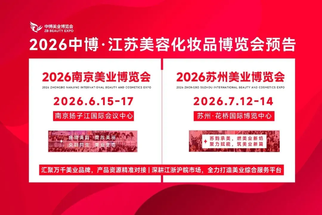 2026年6月15-17日南京美业博览会,2026年7月12-14日苏州美业博览会,我们将携更大规模、更优资源、更强阵容再度归来。届时,更多新品将首发亮相,更多趋势将集中释放,更多商机将静待发掘。