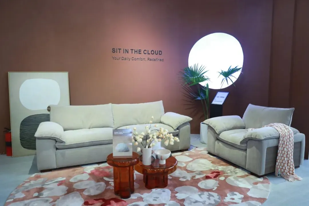 与此同时,一款集成隐藏式电视的沙发床,也成为往来客商的好奇焦点。日常状态下,它与普通沙发无异,线条利落、不露痕迹;而当轻启开关,扶手处面板缓缓开启,电视自动升起,沙发也随之舒展为一张小床。机械结构的巧思,让家具不再是静止的摆设,而成为回应生活想象的灵动存在。