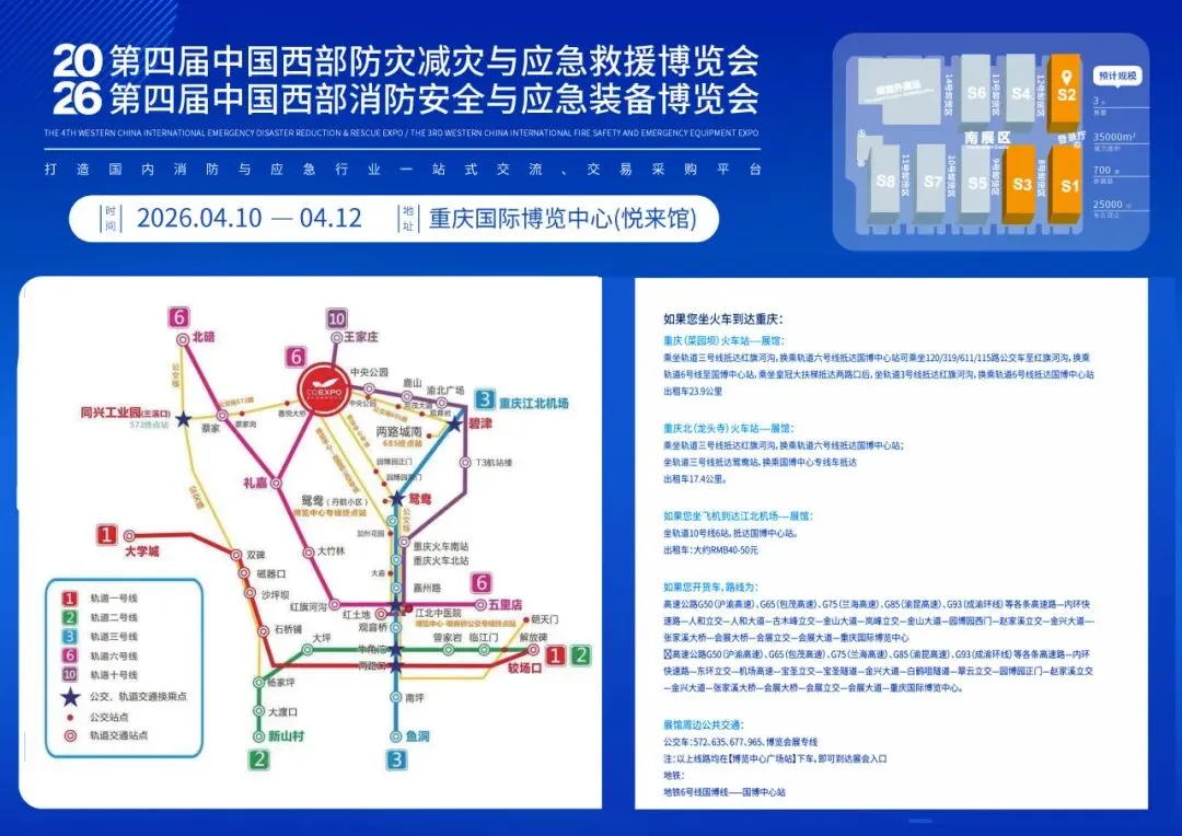 第四届中国西部防灾减灾与应急救援博览会将于2026年4月10日-12日在重庆国际博览中心(悦来馆)隆重举办。