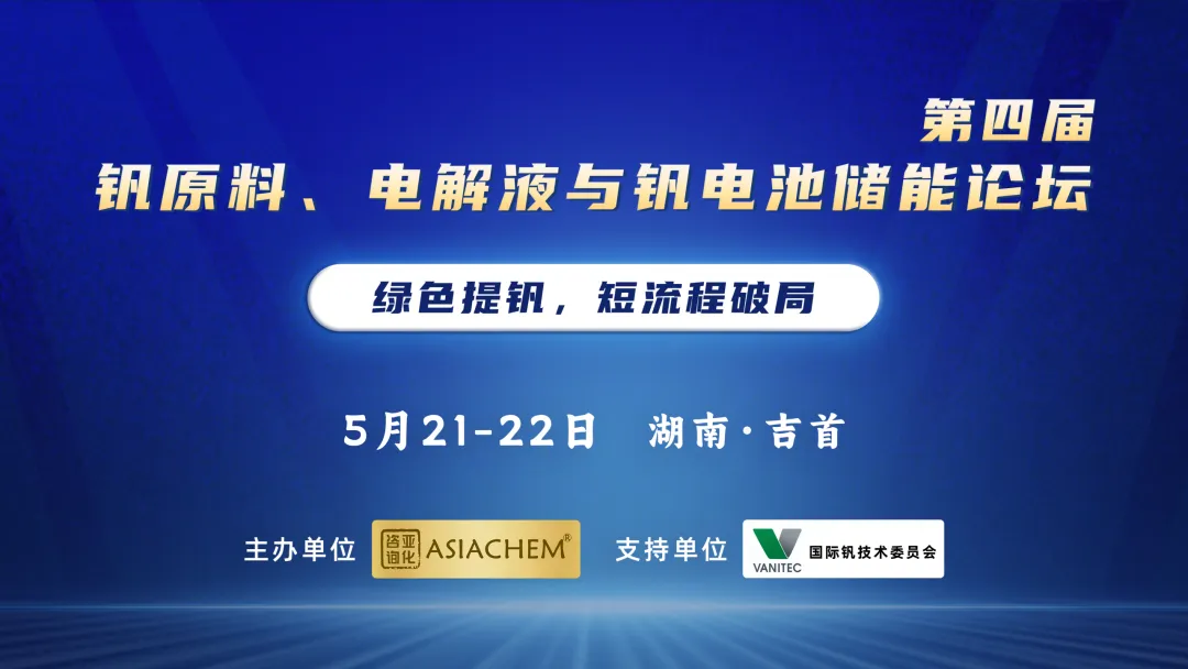 第四届钒原料、电解液与钒电池国际论坛2026将于5月21-22日召开。会议由亚化咨询主办,国际钒技术委员会(Vanitec)支持,探讨钒矿与钒原料供给、清洁高效提钒、钒电解液制备工艺、钒电池技术发展等议题。