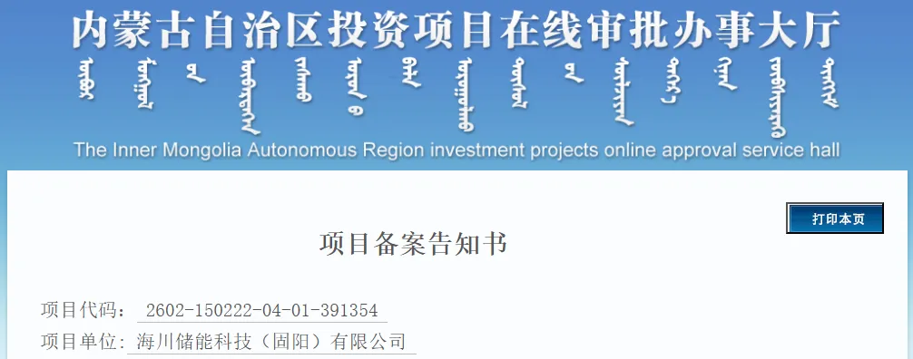 项目单位:海川新能源科技(包头)有限公司