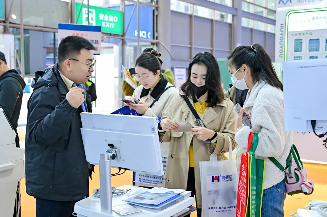 医疗健康板块汇聚了国内外医学影像、手术器械、检验设备、医用耗材等领域的领军企业,GE医疗、迈瑞、普东医疗、欧曼、大为、龙之杰、康泰医学、亚华电子、鱼跃等品牌携最新产品与技术亮相,展台前咨询洽谈的专业观众络绎不绝。